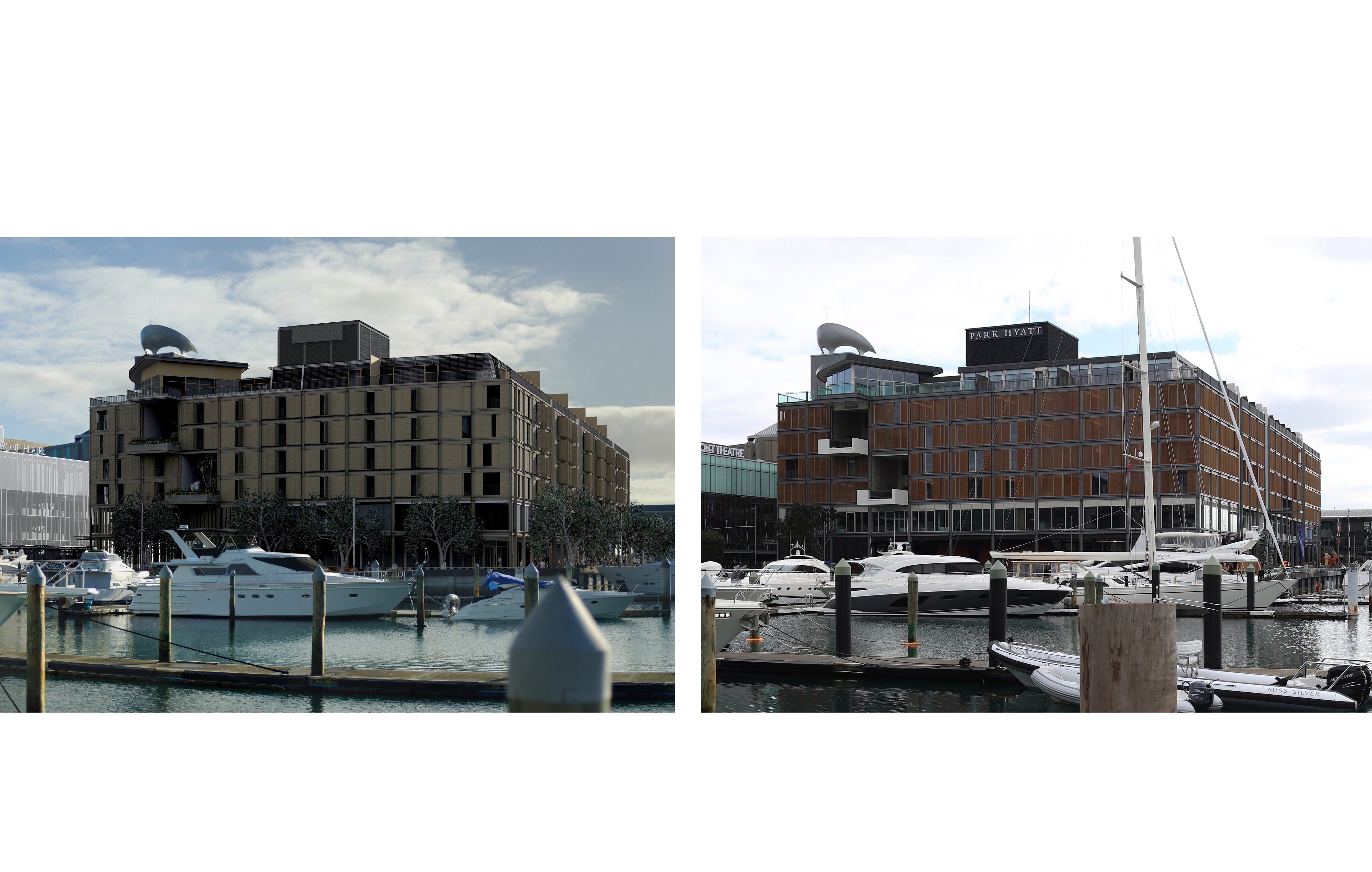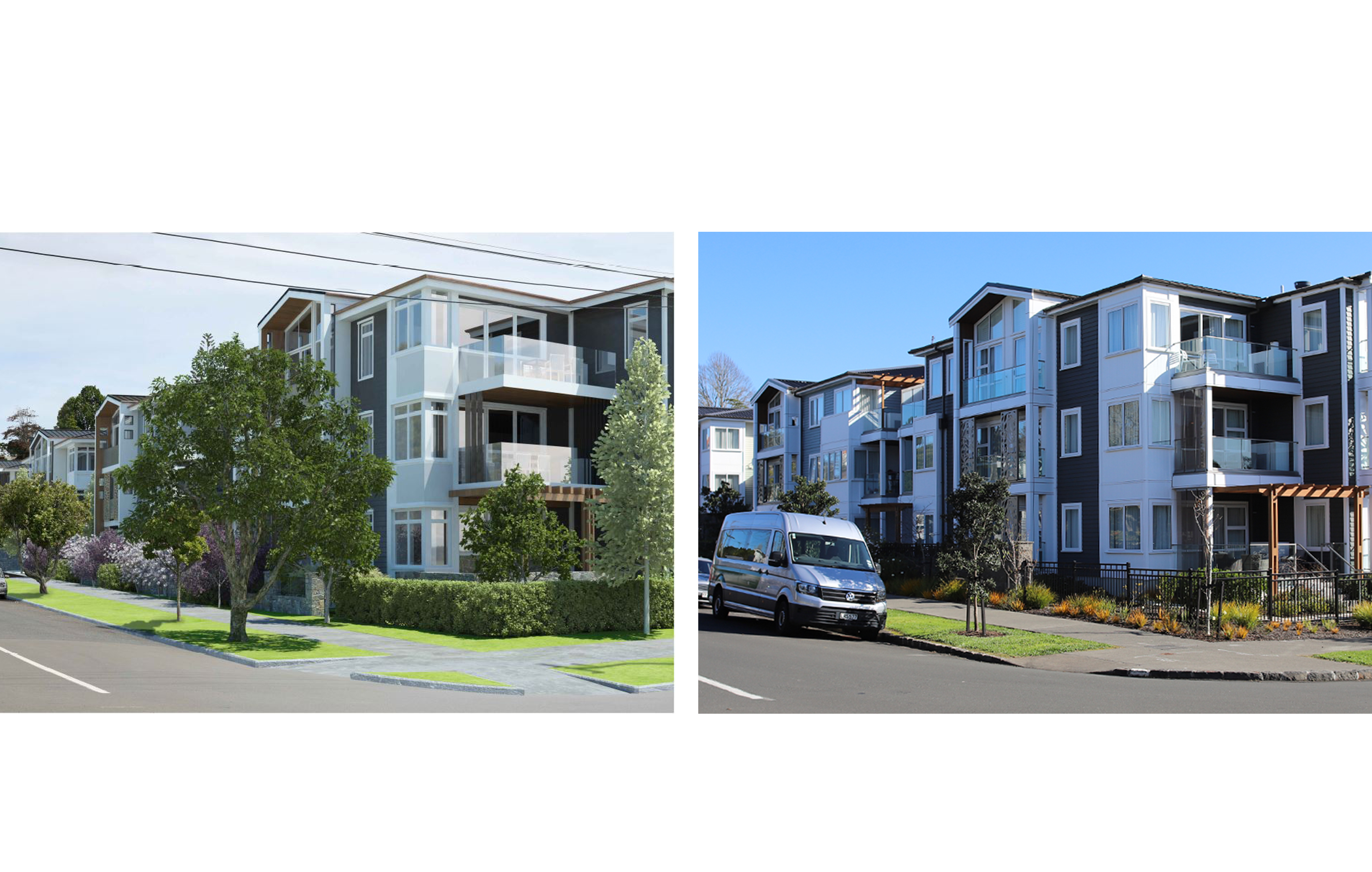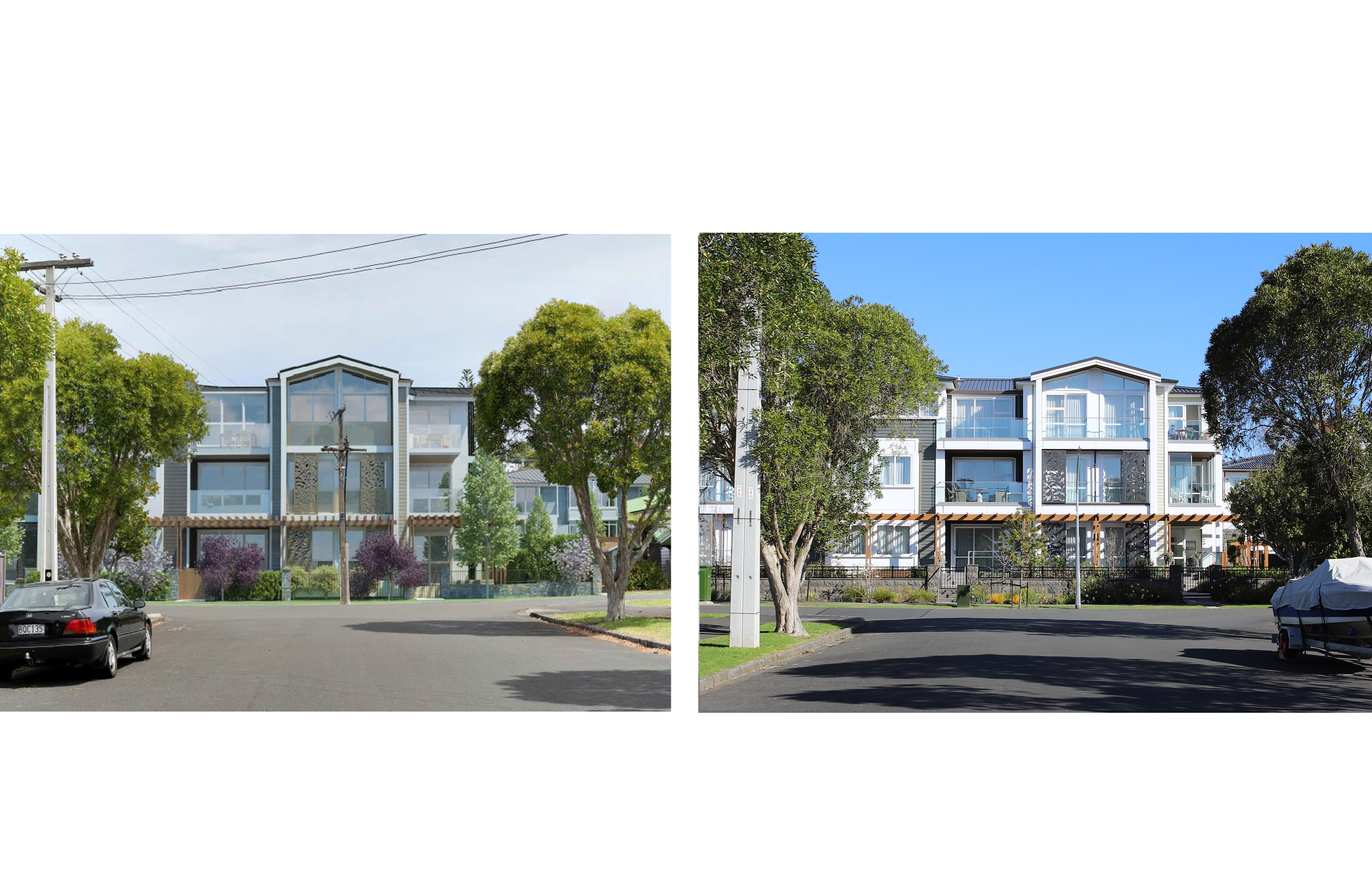 Comparisons of Visual Simulations (left) vs Post Construction photos (right)
